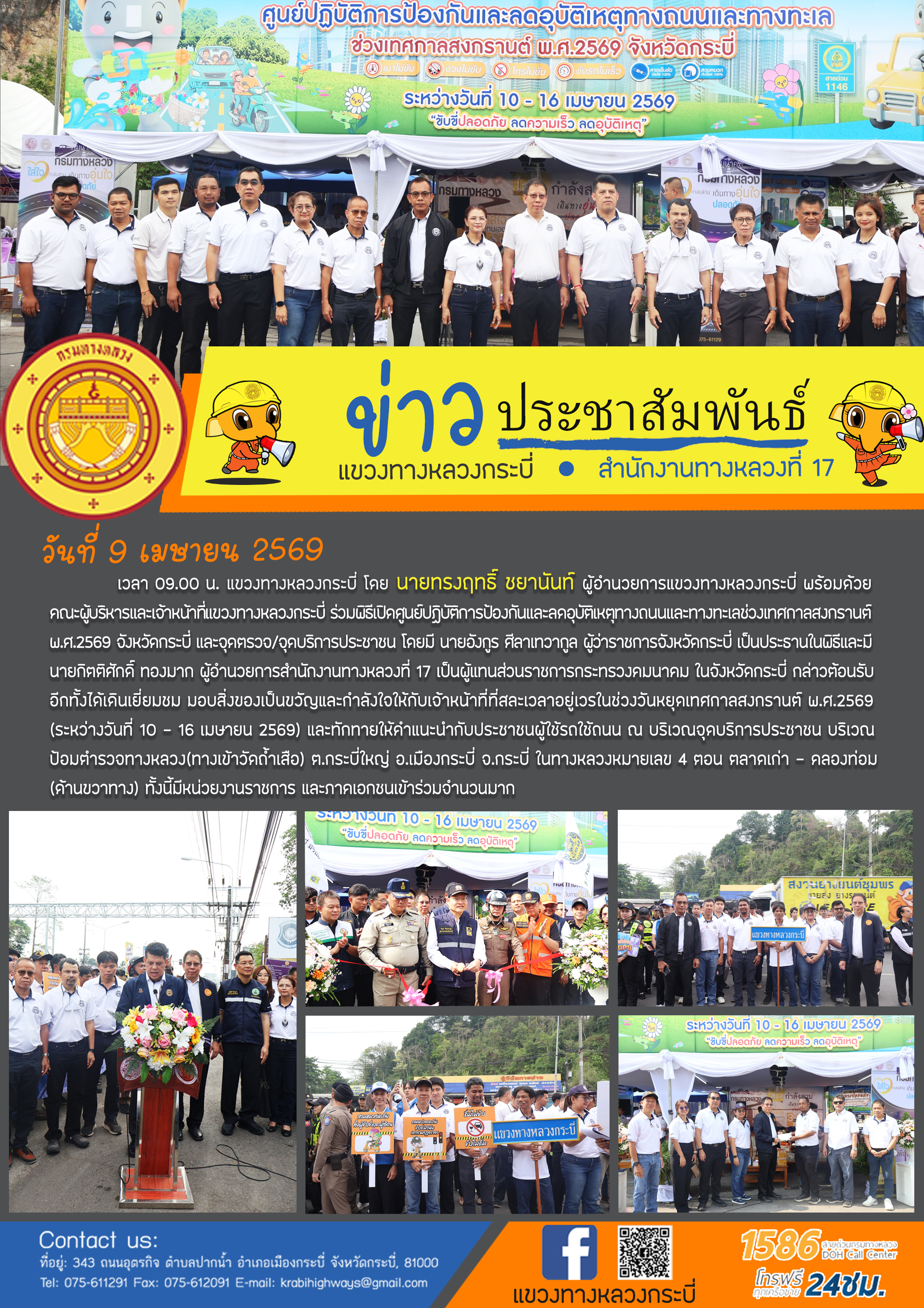 แขวงทางหลวงกระบี่ ร่วมเป็นหนึ่งในคณะทำงานกำกับ และติดตามการป้องกันและลดอุบัติเหตุทางถนนและทางทะเล ช่วงเทศกาลปีใหม่ พ.ศ.2569