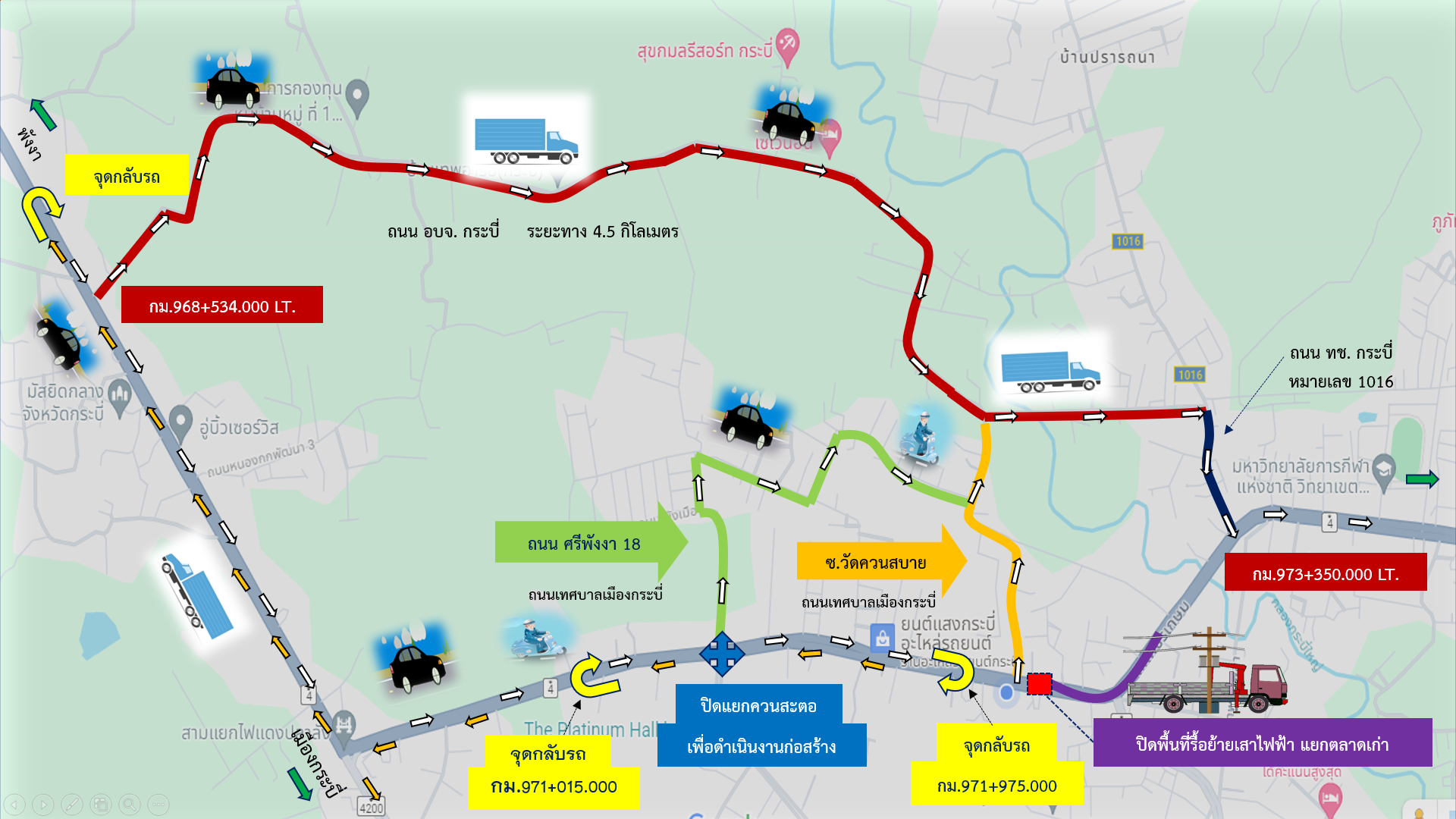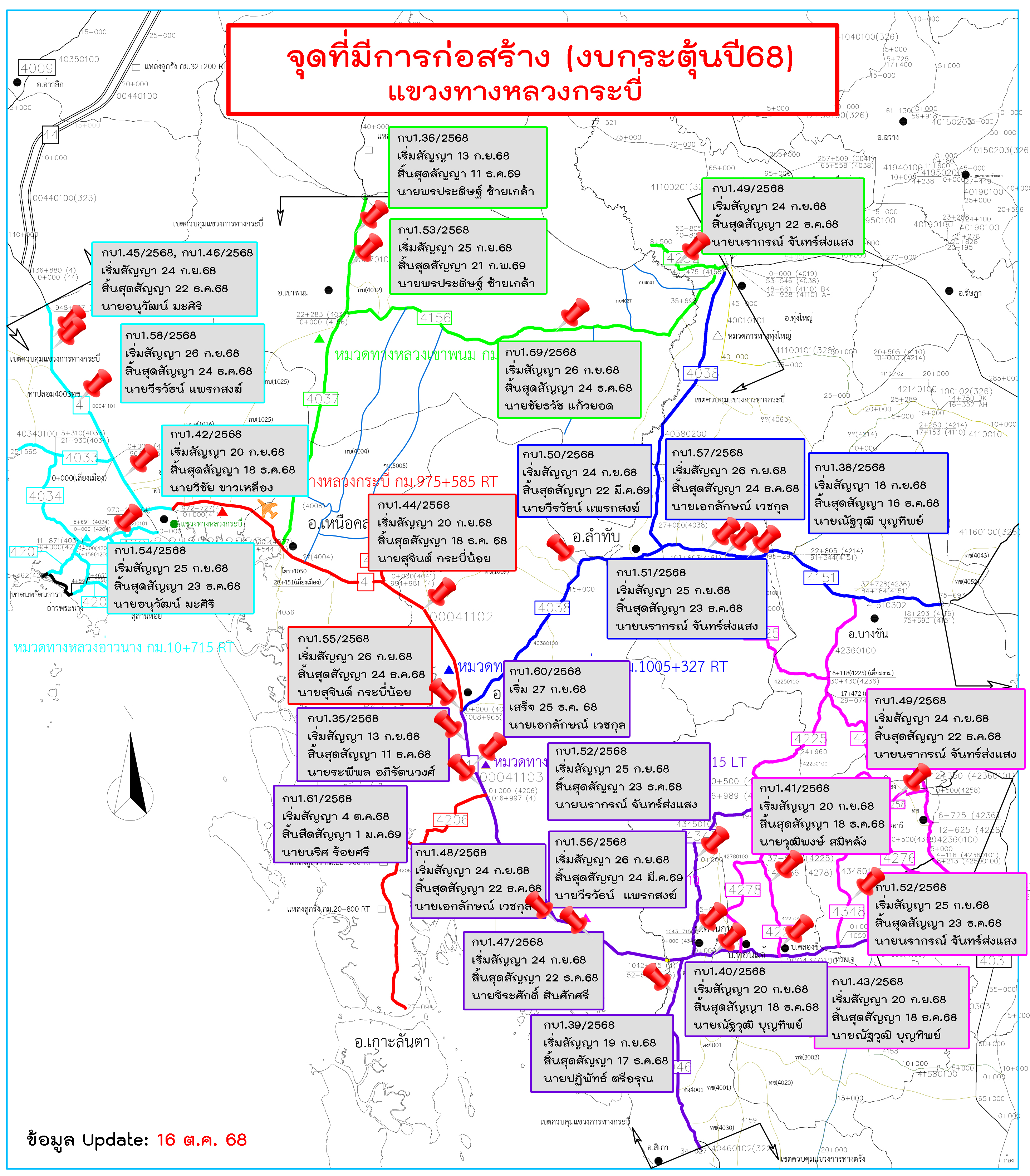 แผนผังพื้นที่ความรับผิดชอบของแขวงทางหลวงกระบี่ที่มีการดำเนินการโครงการก่อสร้าง (งบกระตุ้น ปี68)