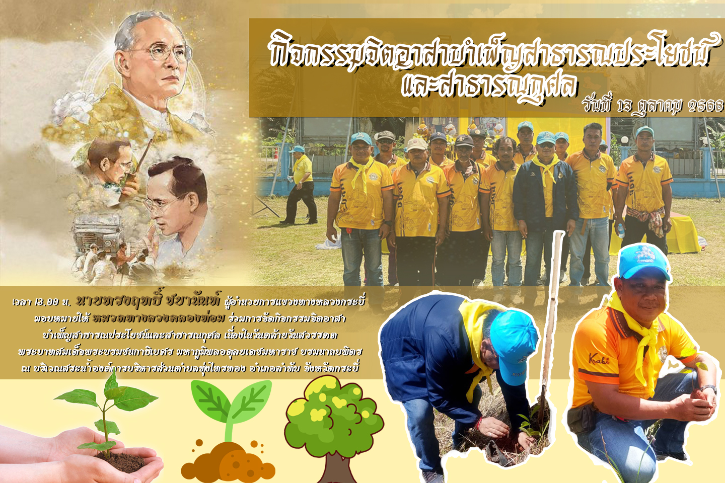 ร่วมการจัดกิจกรรมจิตอาสาบำเพ็ญสาธารณประโยชน์และสาธารณกุศล เนื่องในวันคล้ายวันสวรรคต พระบาทสมเด็จพระบรมชนกาธิเบศร มหาภูมิพลอดุลยเดชมหาราช บรมนาถบพิตร
