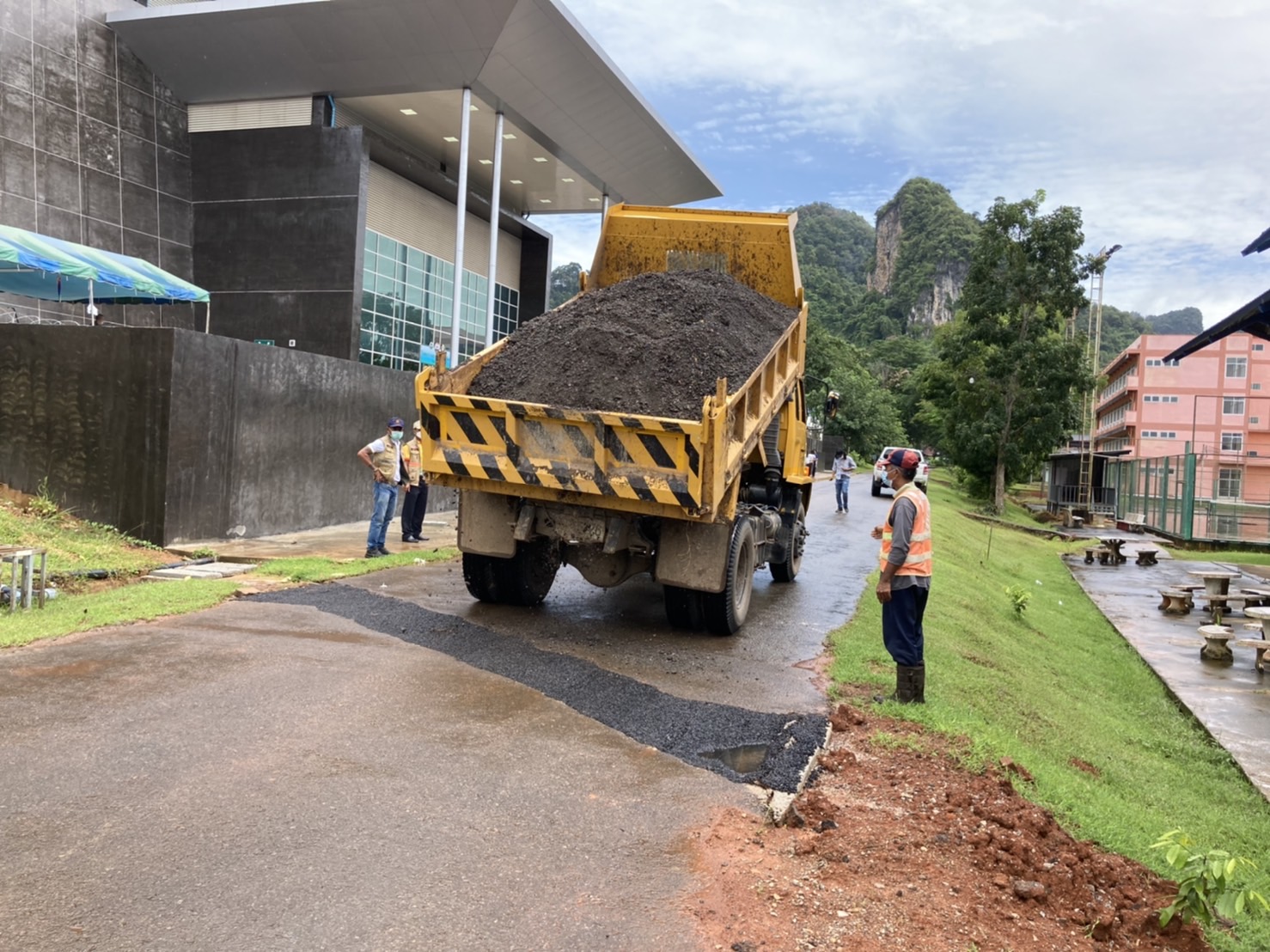 แขวงทางหลวงกระบี่สบับสนุนวัสดุขูดไสให้กับโรงพยาบาลสนามผู้ป่วยโควิด-19 จังหวัดกระบี่