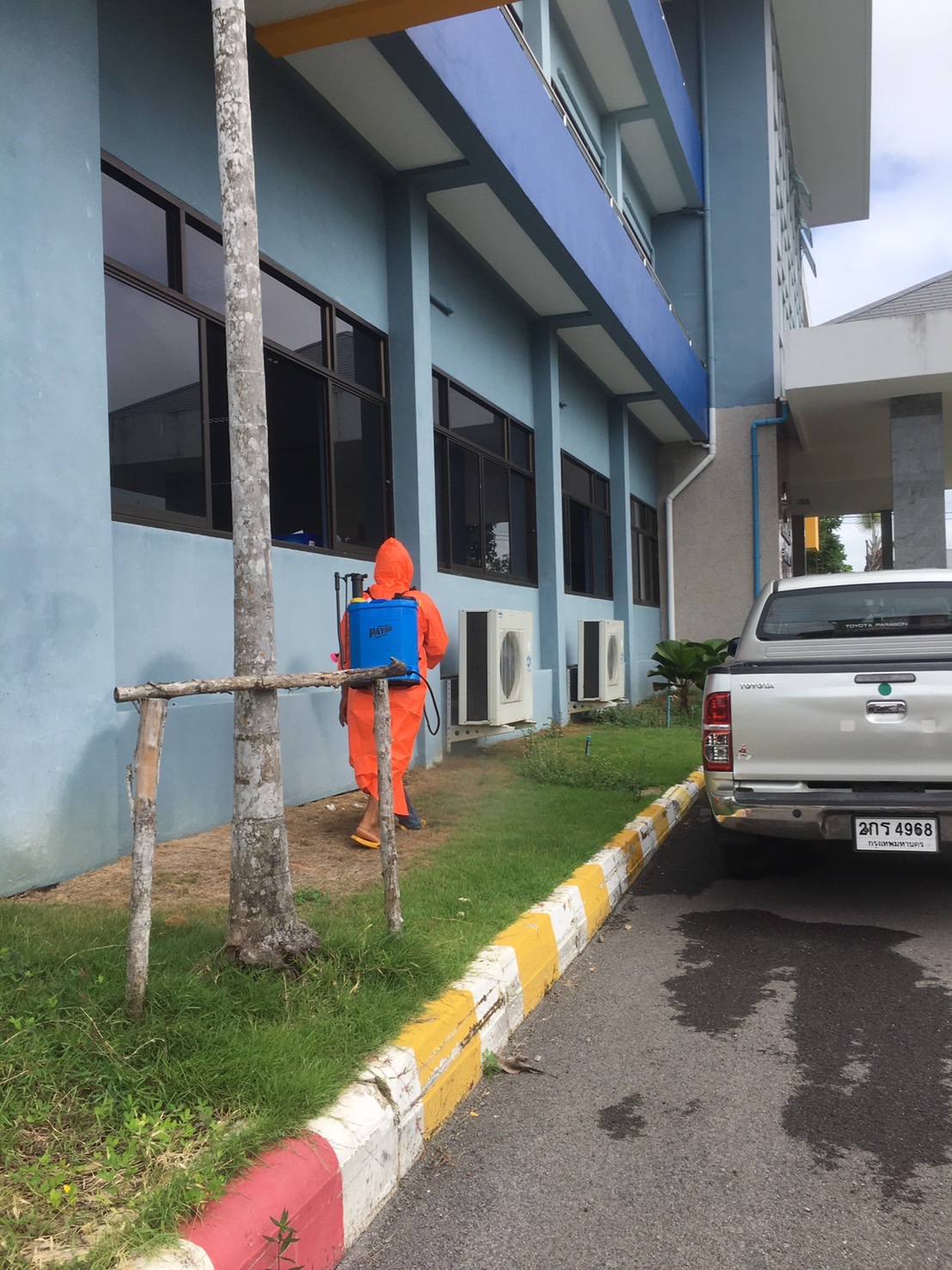 แขวงทางหลวงกระบี่ฉีดพ่นน้ำยาฆ่าเชื้อไวรัสโคโรน่า 2019 (COVID) โดยรอบอาคารสำนักงานแขวงทางหลวงกระบี่