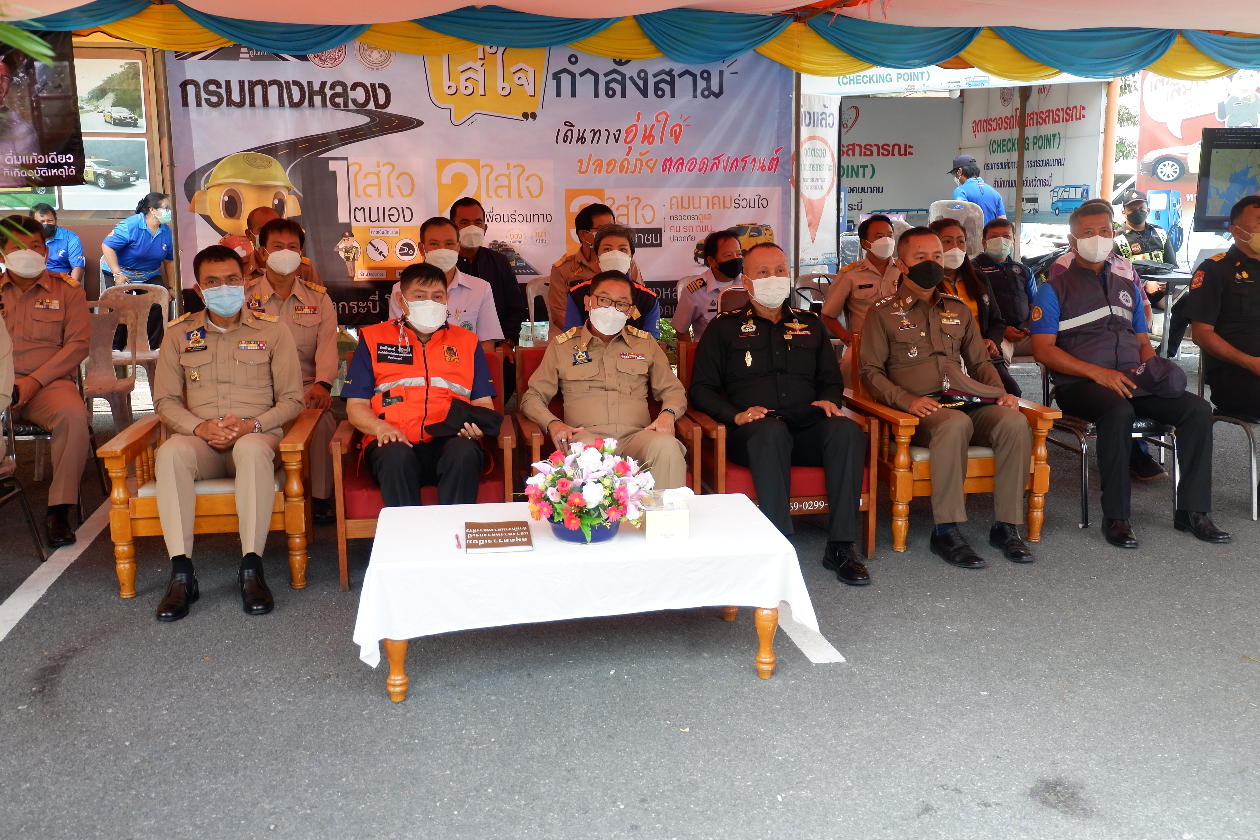 วันที่ 11 เมษายน 2565 เวลา 9.19 น. นายพุฒิพงศ์ ศิริมาศ ผู้ว่าราชการจังหวัดกระบี่ เป็นประธานในพิธีเปิดศูนย์ปฏิบัติการป้องกันและลดอุบัติเหตุทางถนนและทางทะเลช่วงเทศกาลสงกรานต์ พ.ศ. 2565 และเปิดจุดตรวจ/จุดบริการประชาชน ณ ป้อมตำรวจทางหลวง (ทางเข้าวัดถ้ำเสือ) ตำบลกระบี่ใหญ่ อำเภอเมือง จังหวัดกระบี่ โดยมี นายปรีชา วิเศษสิทธิ์ ผู้อำนวยการแขวงทางหลวงกระบี่ ผู้แทนส่วนราชการกระทรวงคมนาคมในจังหวัดกระบี่ กล่าวต้อนรับ และกล่าวรายงานโดยหัวหน้าสำนักงานป้องกันและบรรเทาสาธารณภัยจังหวัดกระบี่ อีกทั้งได้เดินเยี่ยมชมให้ข้อแนะนำเจ้าหน้าที่ ณ จุดบริการประชาชน และร่วมรณรงค์ทางข้ามปลอดภัย ทั้งนี้มีหน่วยงานราชการและภาคเอกชนเข้าร่วมและมอบสิ่งของสนับสนุนการตรวจเยี่ยมในครั้งนี้ด้วย