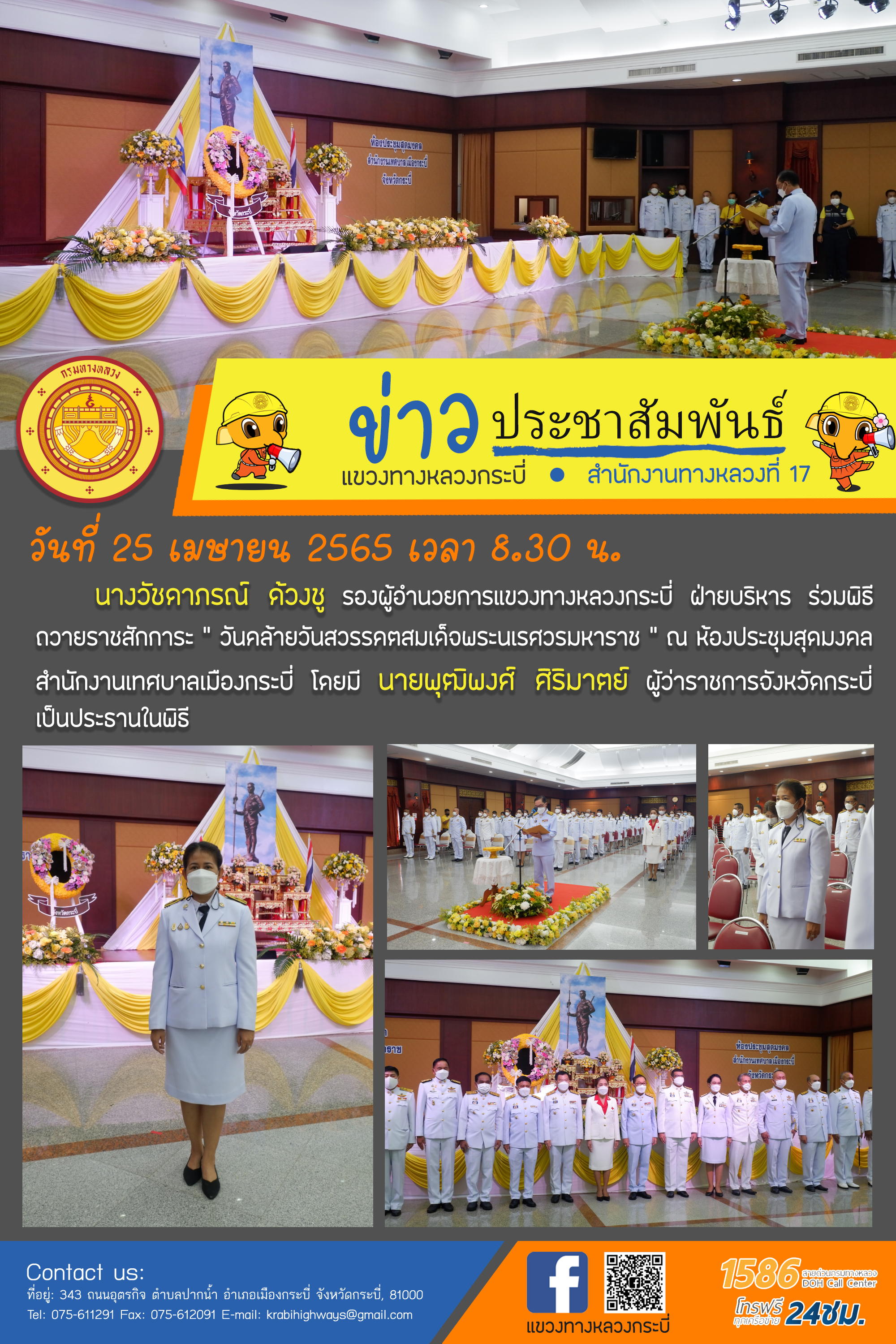 แขวงทางหลวงกระบี่ร่วมร่วมพิธีถวายราชสักการะ "วันคล้ายวันสวรรคตสมเด็จพระนเรศวรมหาราช"
