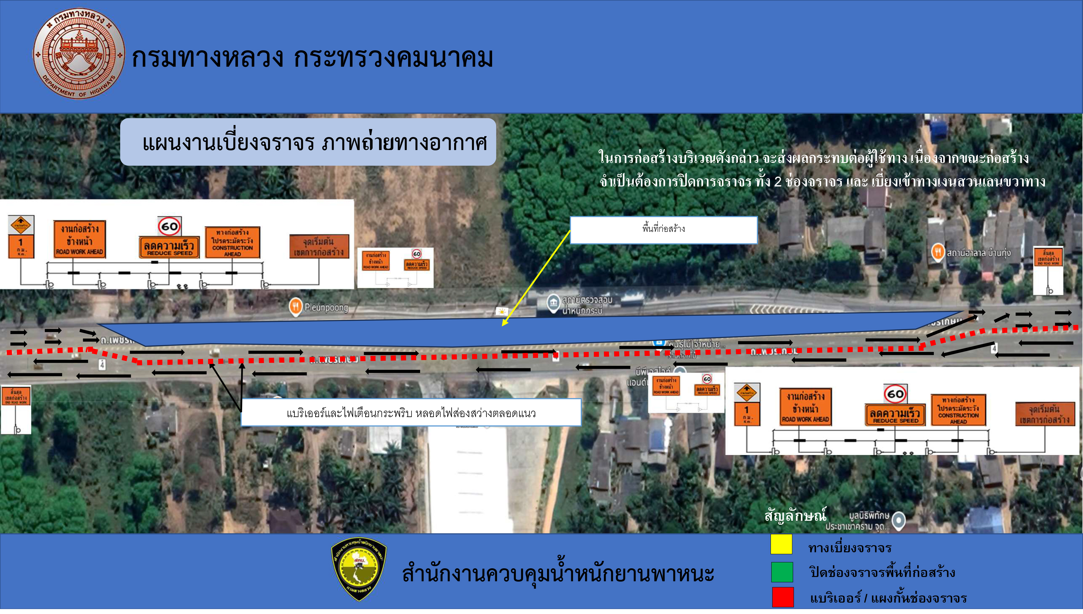 ข้อมูลข่าว : กรมทางหลวงจะทำการเบี่ยงการจราจรเพื่อก่อสร้างถนน