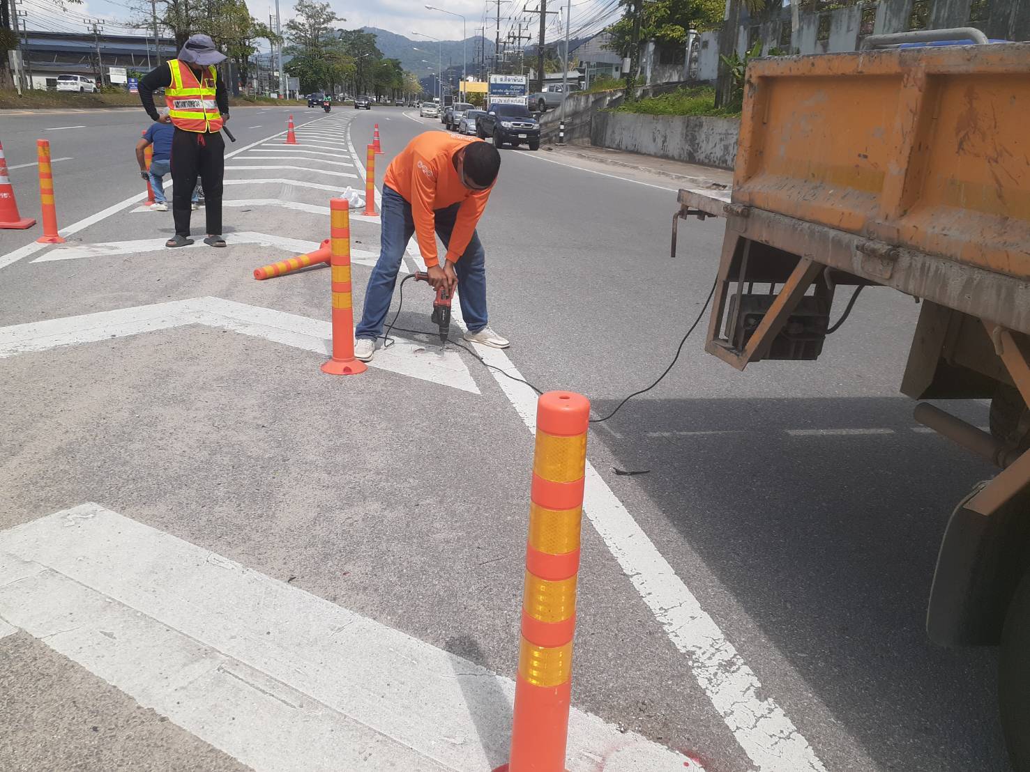 งานอำนวยความปลอดภัย ดำเนินการติดตั้งหลักล้มลุก ทล.4 ตอน กระบุรี - หงาว กม.595+500