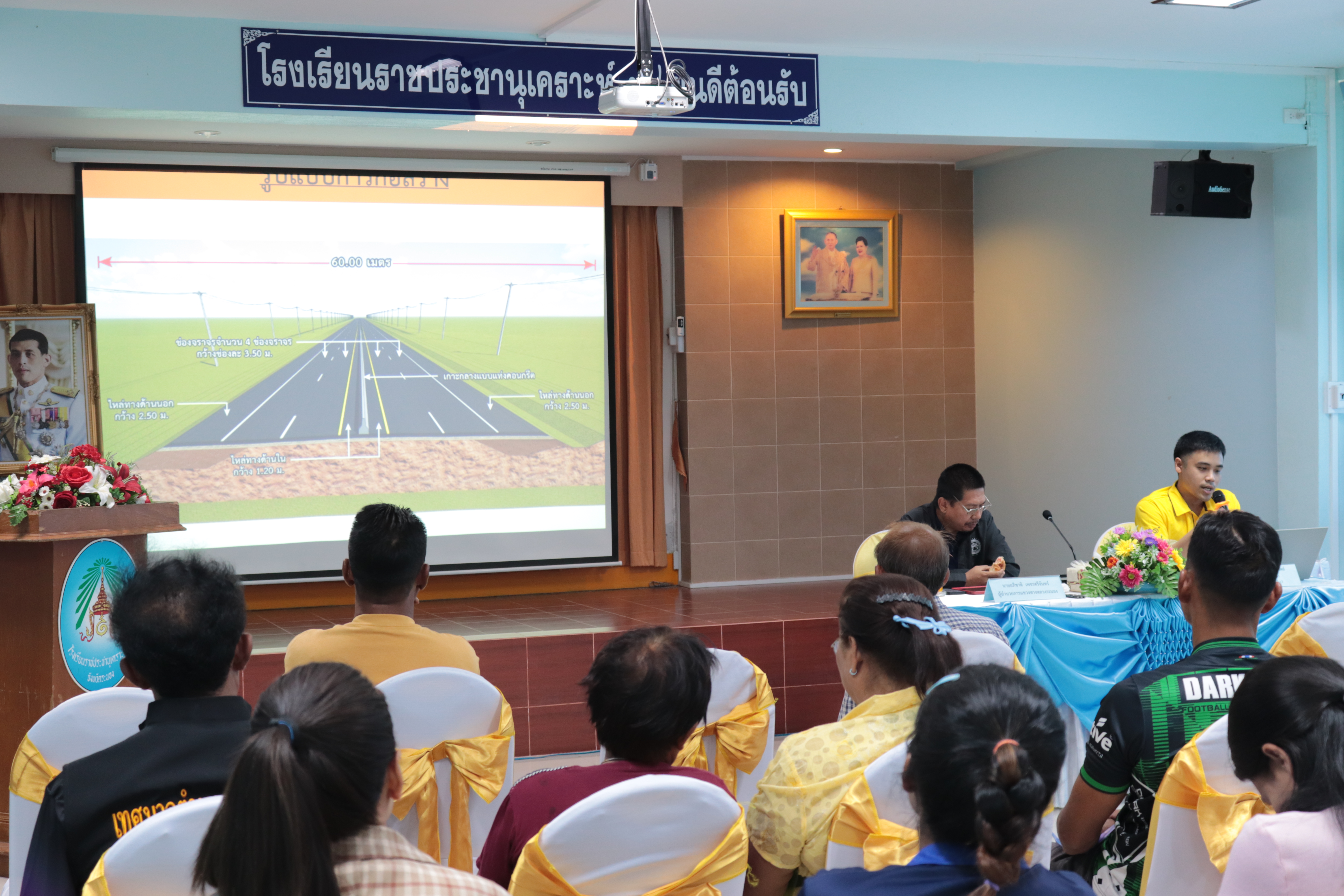 ประชุมการมีส่วนร่วมของประชาชน โครงการก่อสร้างเพิ่มช่องจราจร กิจกรรมก่อสร้างเพิ่มประสิทธิภาพทางหลวง ทางหลวงหมายเลข 4 ตอน หงาว – อ่าวเคย ระหว่าง กม.618+000 – กม.618+900 (พื้นที่ตำบลราชกรูด) ณ อาคารอเนกประสงค์โรงเรียนราชประชานุเคราะห์ 38 จังหวัดระนอง อำเภอเมืองระนอง จังหวัดระนอง