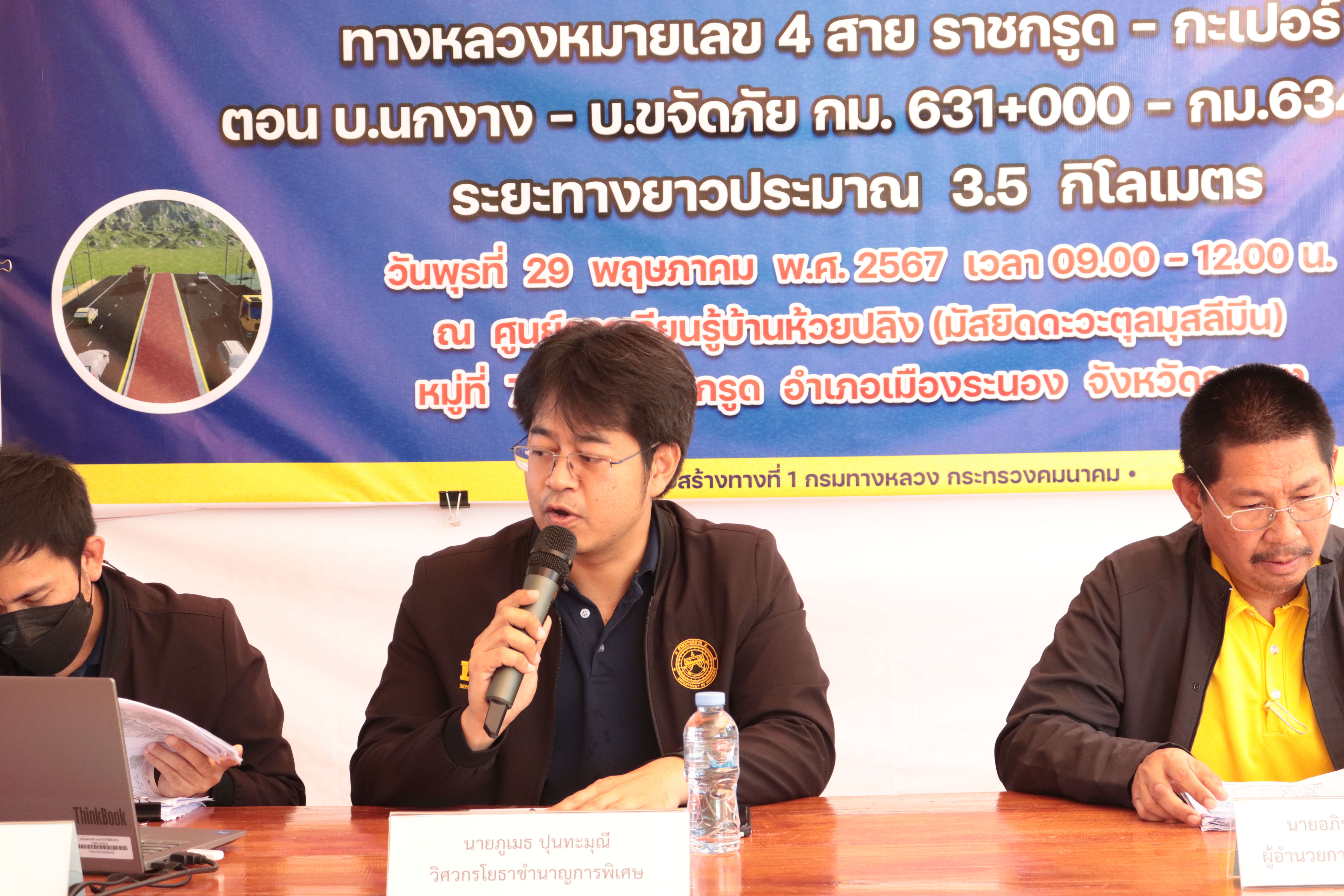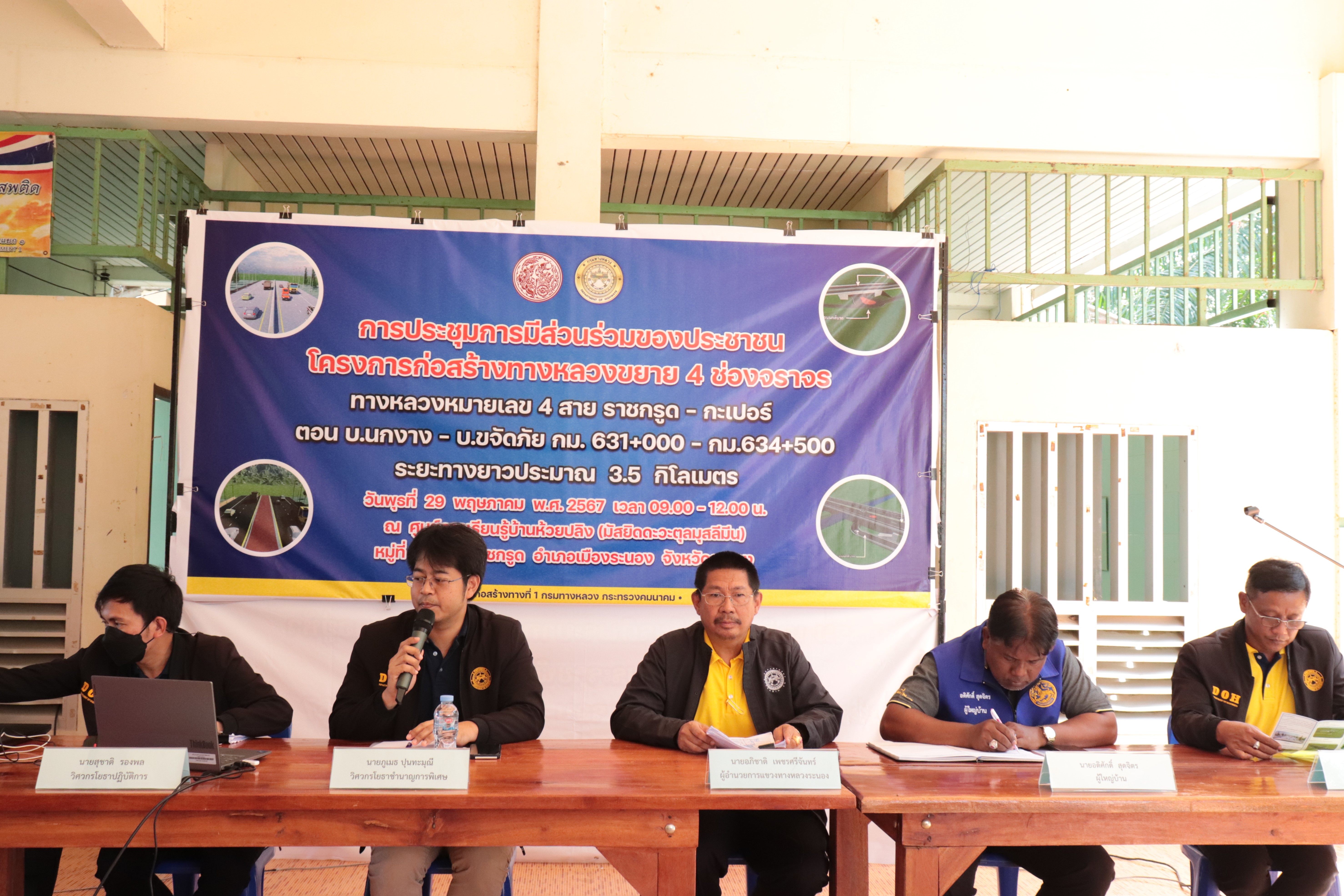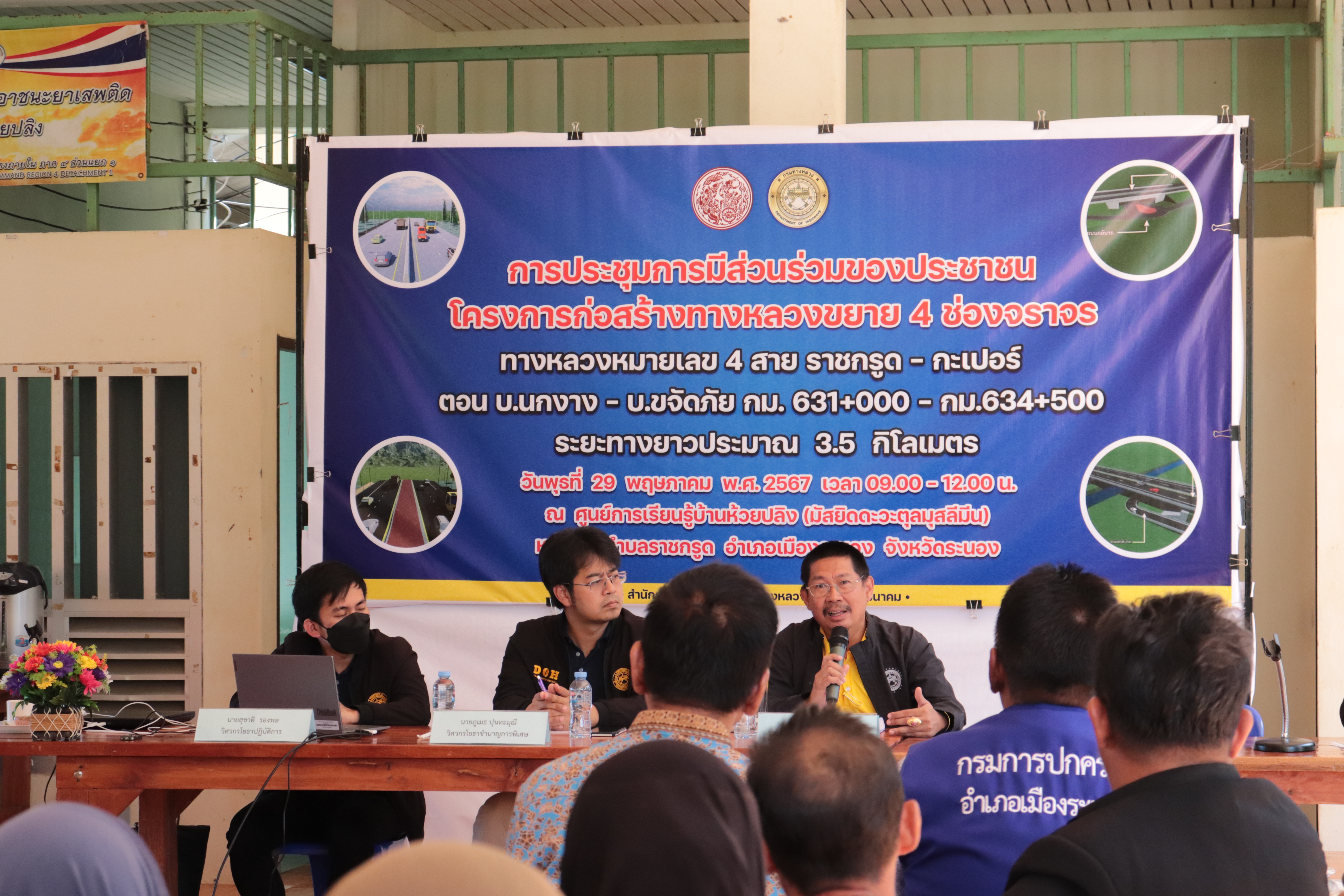 ประชุมการมีส่วนร่วมของประชาชน โครงการก่อสร้างทางหลวงขยาย 4 ช่องจราจร และต้นไม้ในเขตทางหลวง บนทางหลวงหมายเลข 4 สาย ราชกรูด - กะเปอร์ ตอน บ.นกงาง - บ.ขจัดภัย กม.631+000 - กม.634+500