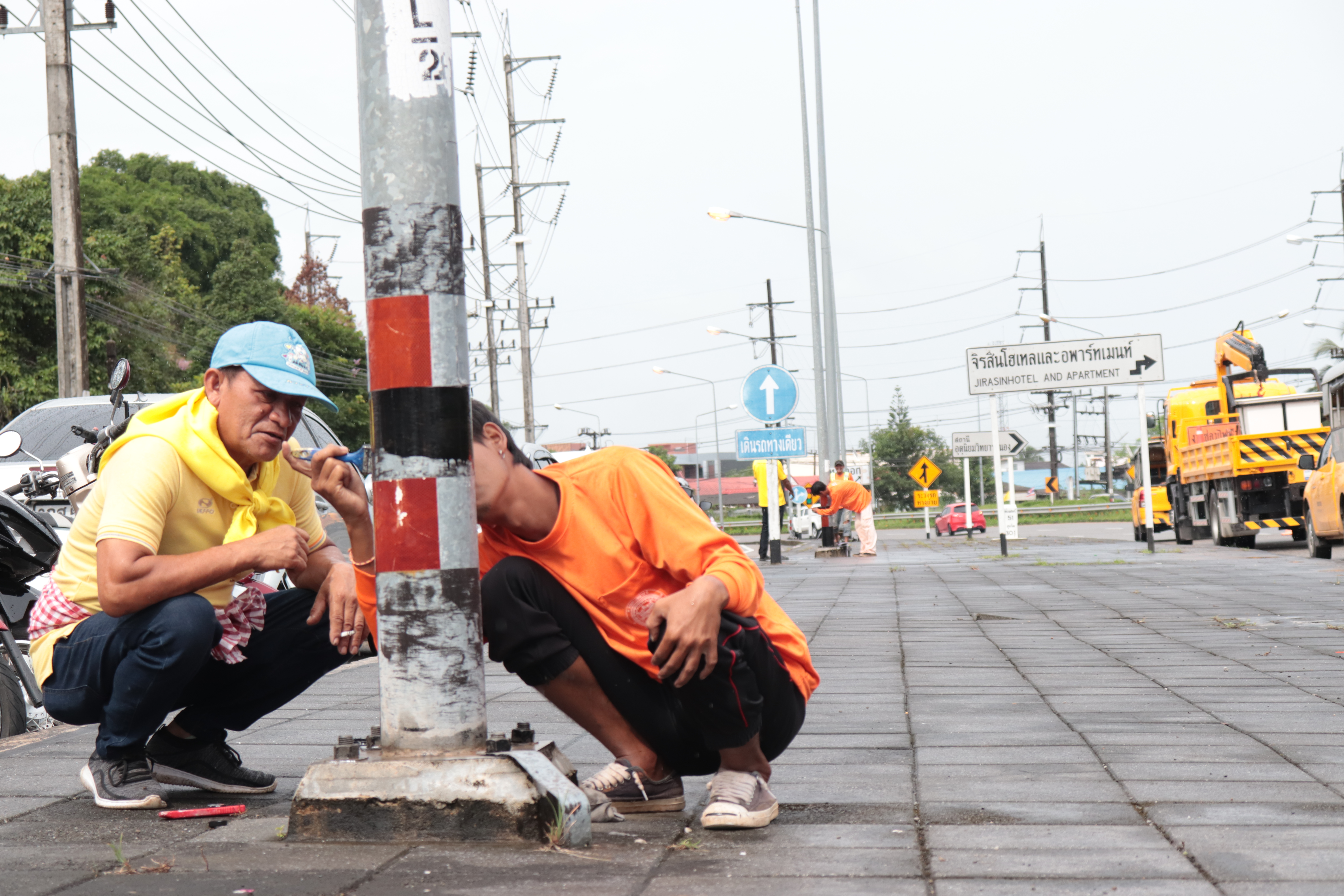 โดยร่วมกันทำความสะอาดสะพานลอย และทาสีเสาไฟฟ้าแสงสว่าง บนทางหลวงหมายเลข 4