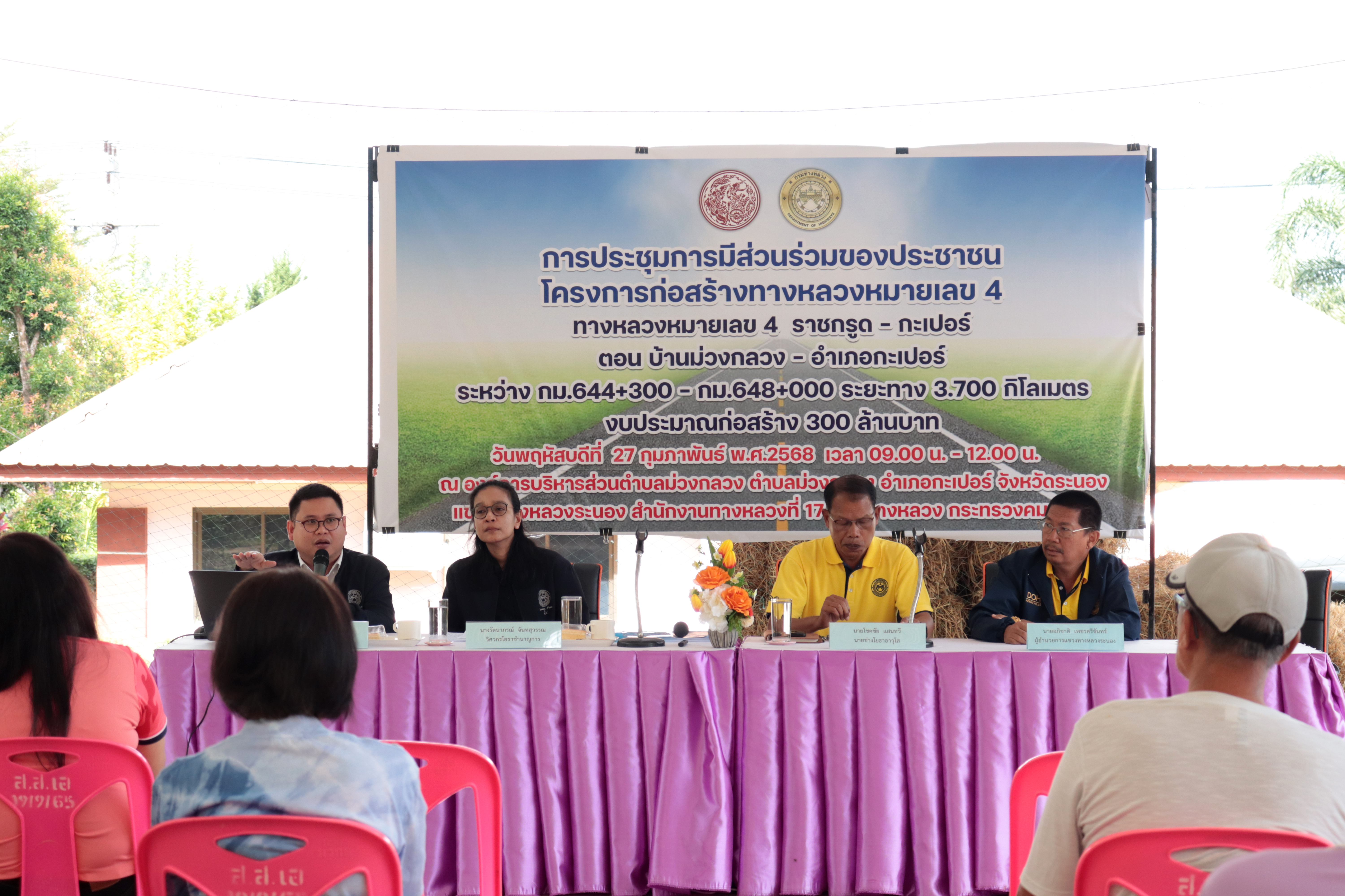 ประชุมการมีส่วนร่วมของประชาชน โครงการก่อสร้างทางหลวงหมายเลข 4 ราชกรูด - กะเปอร์ ตอน บ้านม่วงกลวง - อำเภอกะเปอร์ ระหว่าง กม.644+300 - กม.648+000