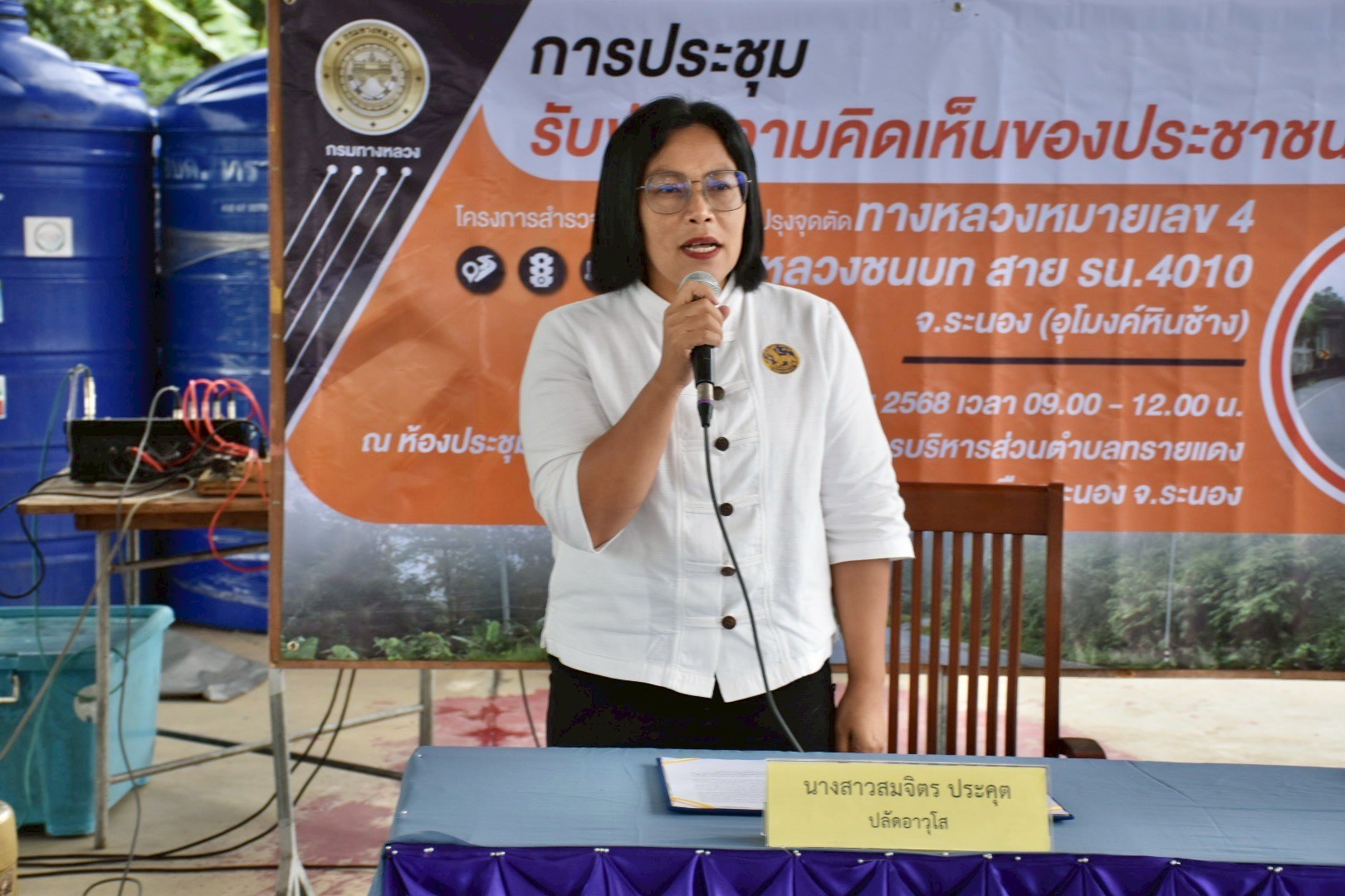 การประชุมรับฟังความคิดของประชาชนครั้งที่ 1 โครงการสำรวจและออกแบบปรับปรุงจุดตัด ทางหลวงหมายเลข 4 กม.581 กับ ทางหลวงชนบท สาย รน.4010 ระนอง (ทางลอดอุโมงค์หินช้าง)