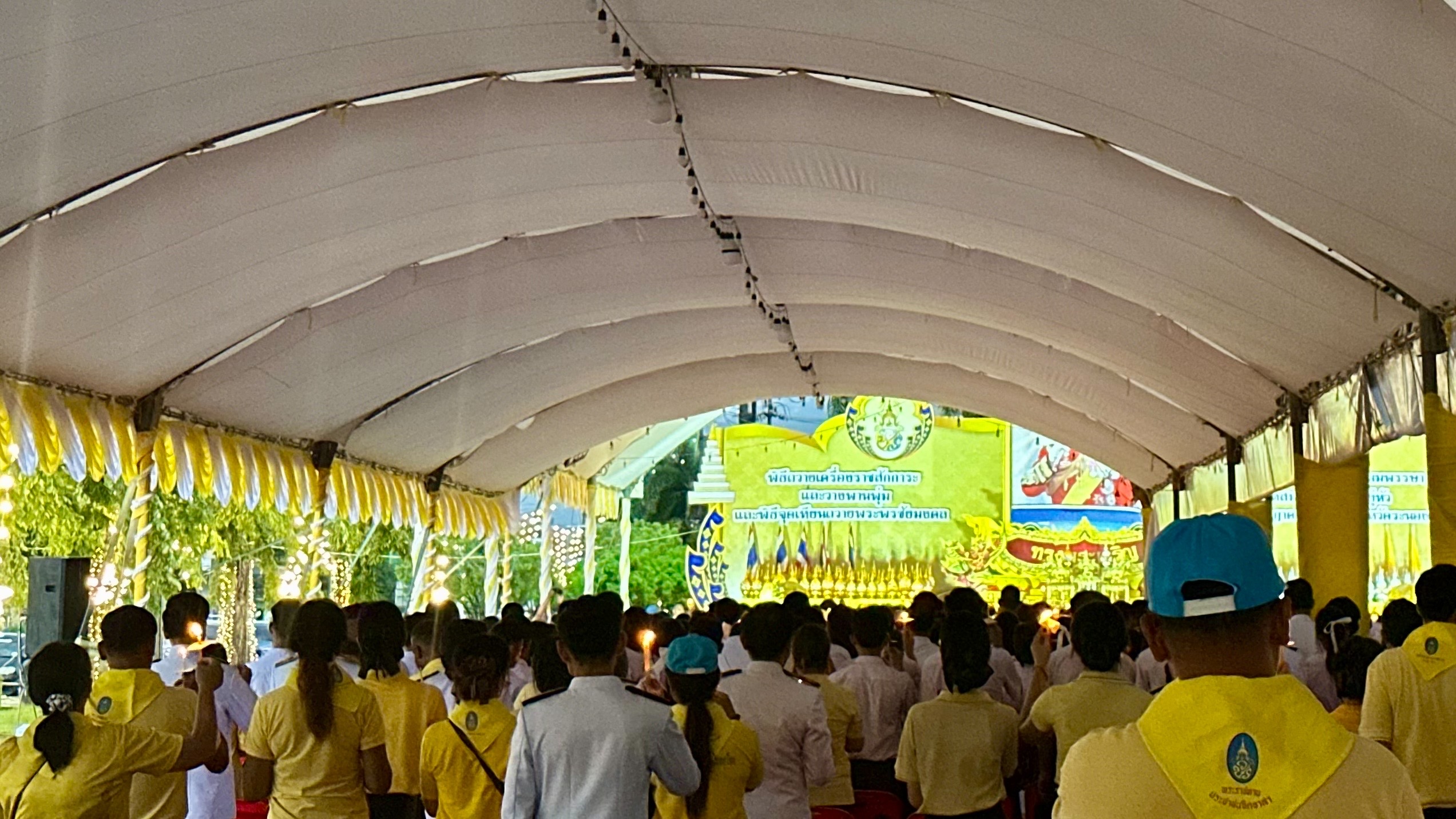 จากนั้นร่วมพิธีถวายเครื่องราชสักการะ วางพานพุ่ม และพิธีจุดเทียนถวายพระพรชัยมงคล