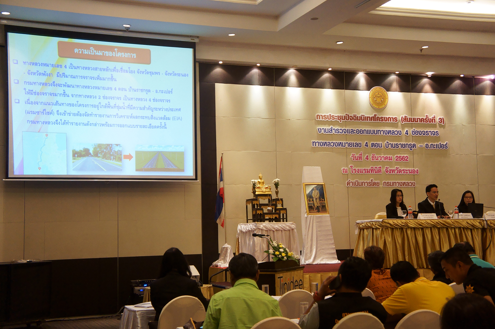 ประชุมปัจฉิมนิเทศโครงการ (สัมมนาครั้งที่ ๓) งานสำรวจออกแบบทางหลวง ๔ ช่องจราจร ทางหลวงหมายเลข ๔ ตอน บ้านราชกรูด - อ.กะเปอร์