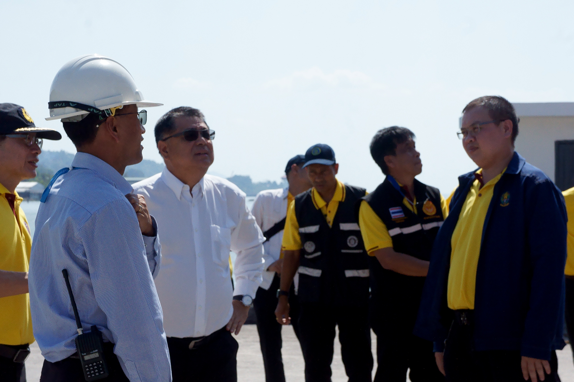 นายสมัย โชติกุล และพร้อมลงพื้นที่ตรวจสอบบริเวณท่าเรือเอนกประสงค์ระนอง จังหวัดระนอง